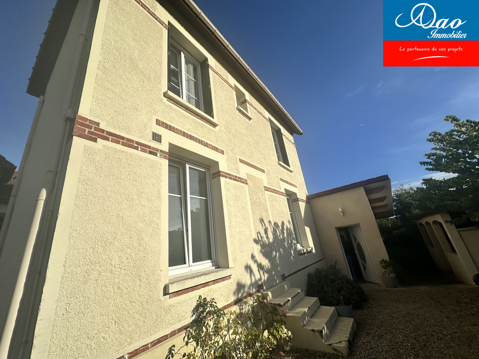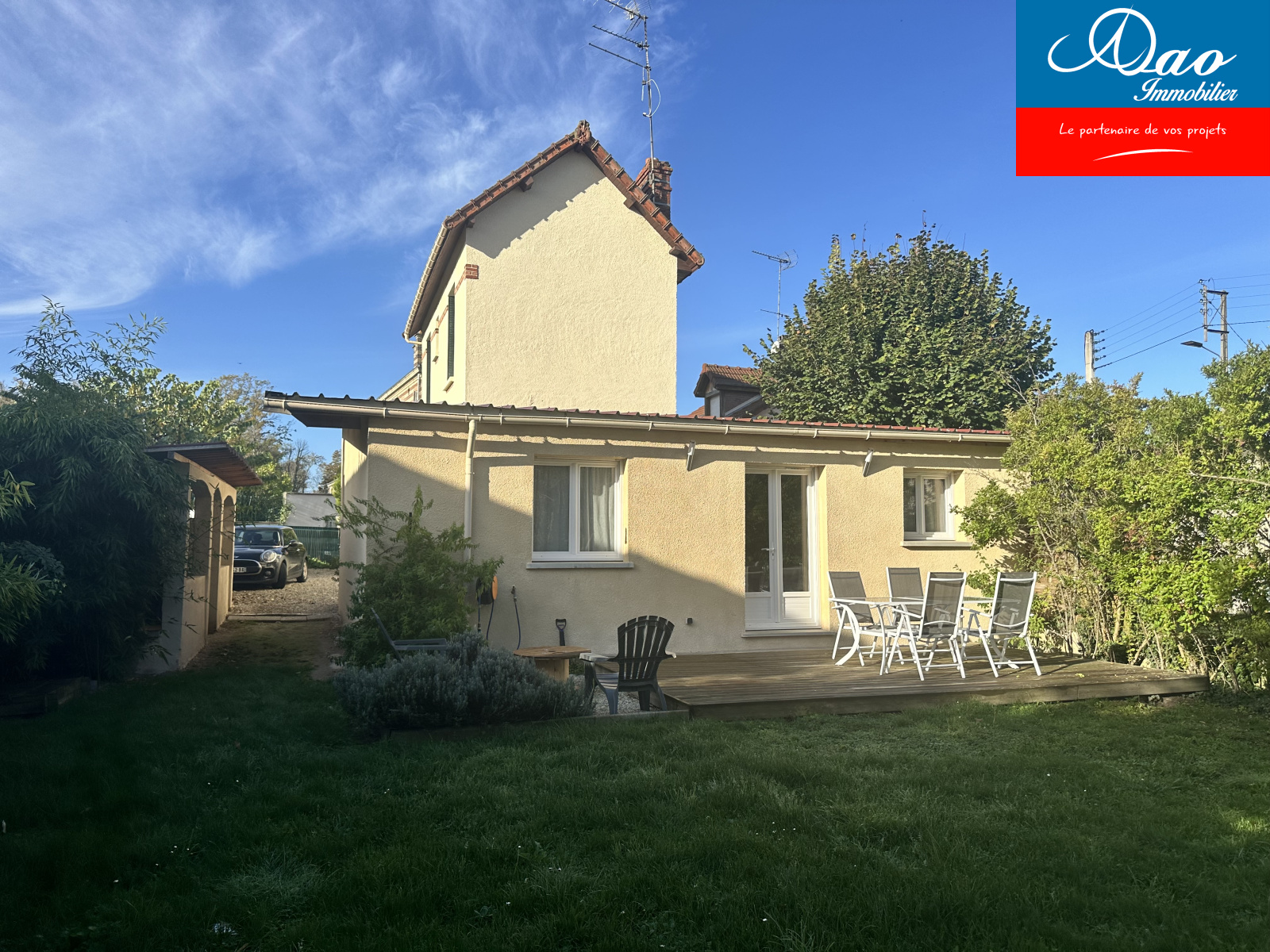A vendre, proche centre ville de Troyes, maison style 1930 de type 5: entrée donnant sur un salon séjour avec cuisine us équipée d'environ 52m2, wc avec buanderie, salle de bain avec douche et baignoire. Palier, wc, 2 chambres. Double vitrage, chauffage gaz de ville à condensation. Gargage, cave, terrain clos et arboré de 470m2. Taxe foncière 1400 e/an. MANDAT 1279. Agence DAO Immobilier, 113 av Galliéni, 10300 Sainte Savine et Aix en Othe.