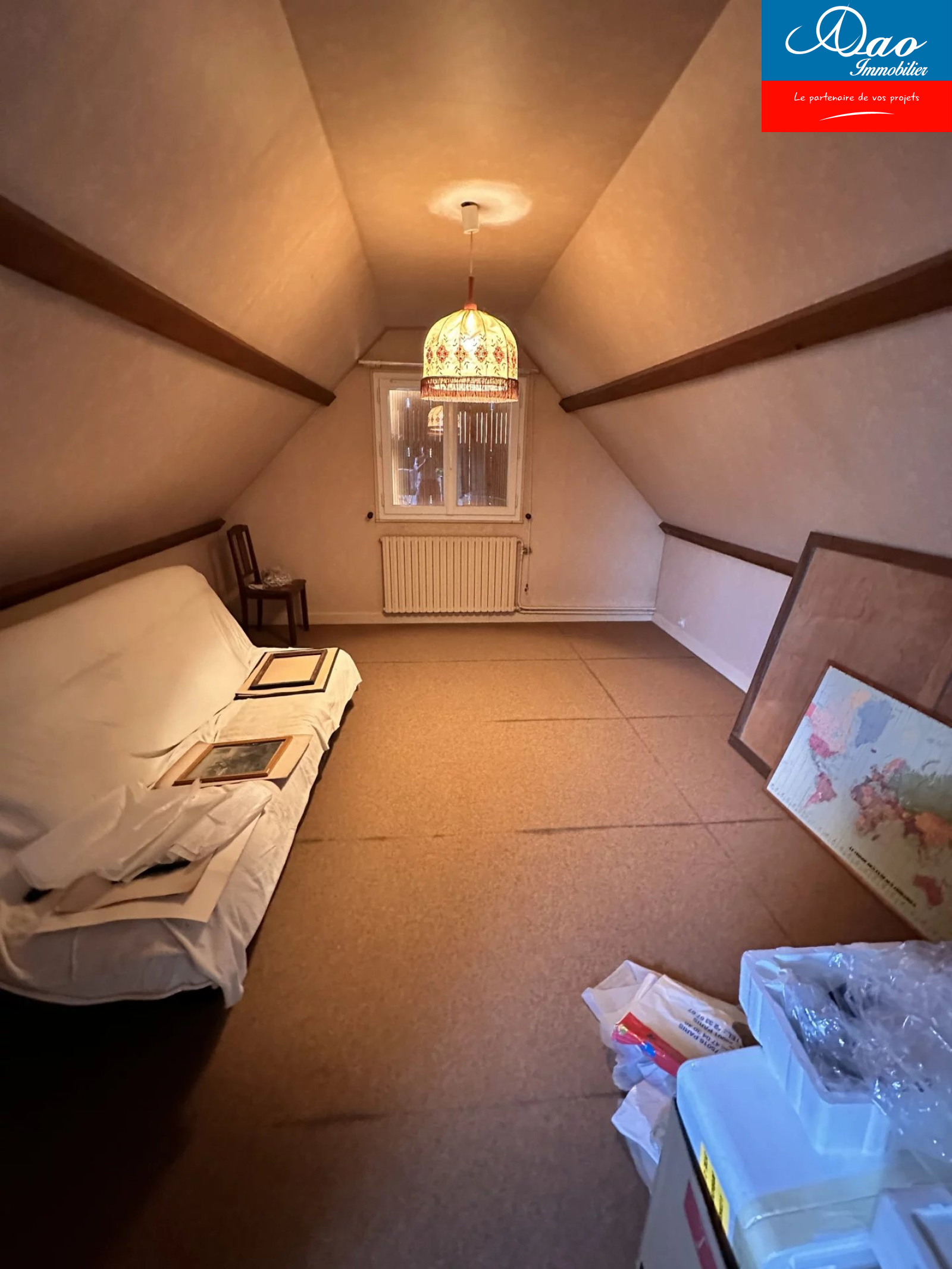 A moins de 5 min du centre ville de Troyes, au calme, maison de plain pied: entrée, salon, cuisine, 2 chambres avec placard, salle de douche, toilettes. A l'étage: 1 chambre et un grenier aménageable. Double vitrage, chauffage gaz condensation récent. Garage, terrasse, terrain d'environ 350m2 arboré. Rafraichissement à prévoir. Faire offre. MANDAT 1136; Dao Immobilier, 113 av Galliéni, 10300 Sainte Savine et Aix en Othe.