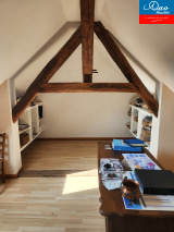 Une belle pièce de vie et grande cuisine séparée, deux chambres et un beau grenier isolé aménagé en bureau, à vous le libre choix et l'imagination pour cette belle grande pièce.