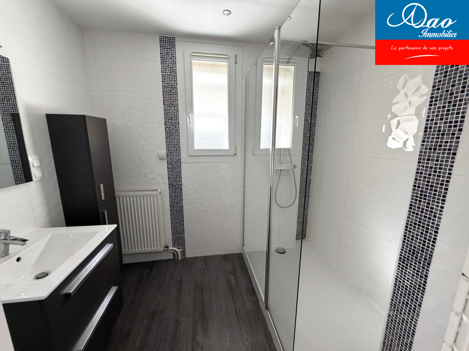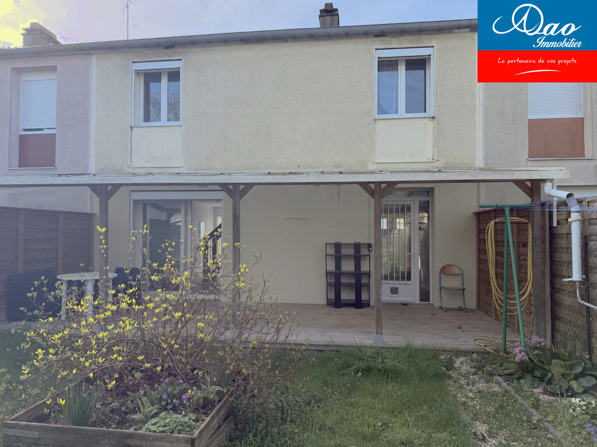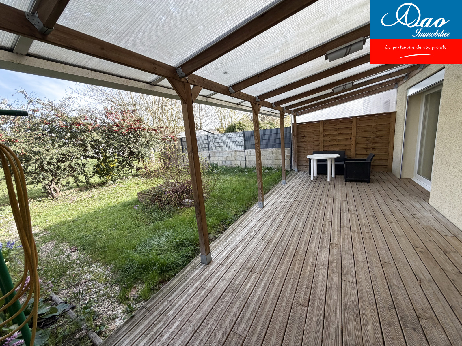 Secteur hopital, proche IUT/ UTT de Troyes, dans un ensemble immobilier de 40 lots, maison mitoyenne de type 5: entrée donnant sur grand salon séjour avec cuisine us équipée, wc, cellier. Palier, 3 chambres, bureau, salle de douche. Double vitrage, volet élec, chauffage gaz individuel récent. Garage, 2 places de parking. Terrasse donnant sur un terrain à usage privatif clos et arboré. Aucun travaux à prévoir. Idéal placement financier ou amoureux du confort sans contrainte. Taxe foncière: 1378 euros/an, provision d'eau froide et entretien des espaces verts 63 euros/ mois. MANDAT 1443. Prix frais d'agence inclus charge acquéreur. Agence DAO Immobilier, 113 av Galliéni, 10300 Sainte Savine et Aix en Othe.