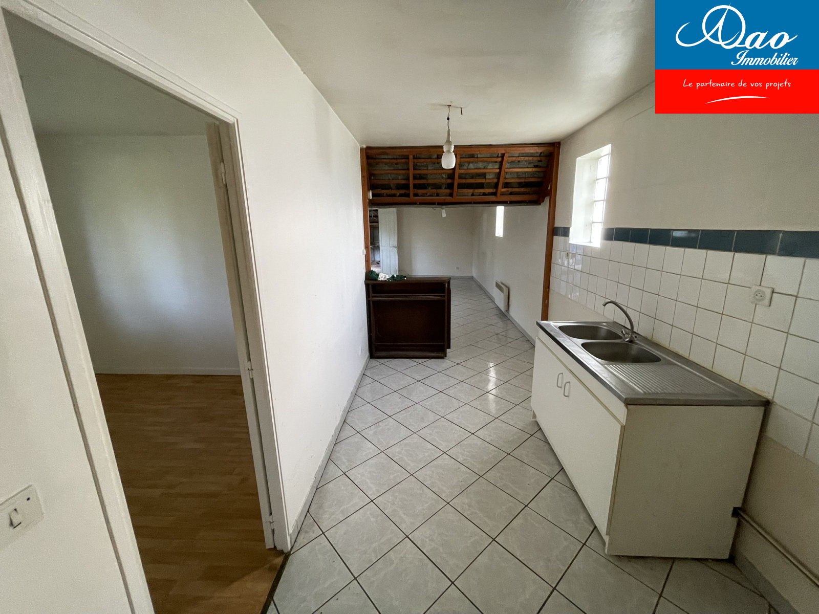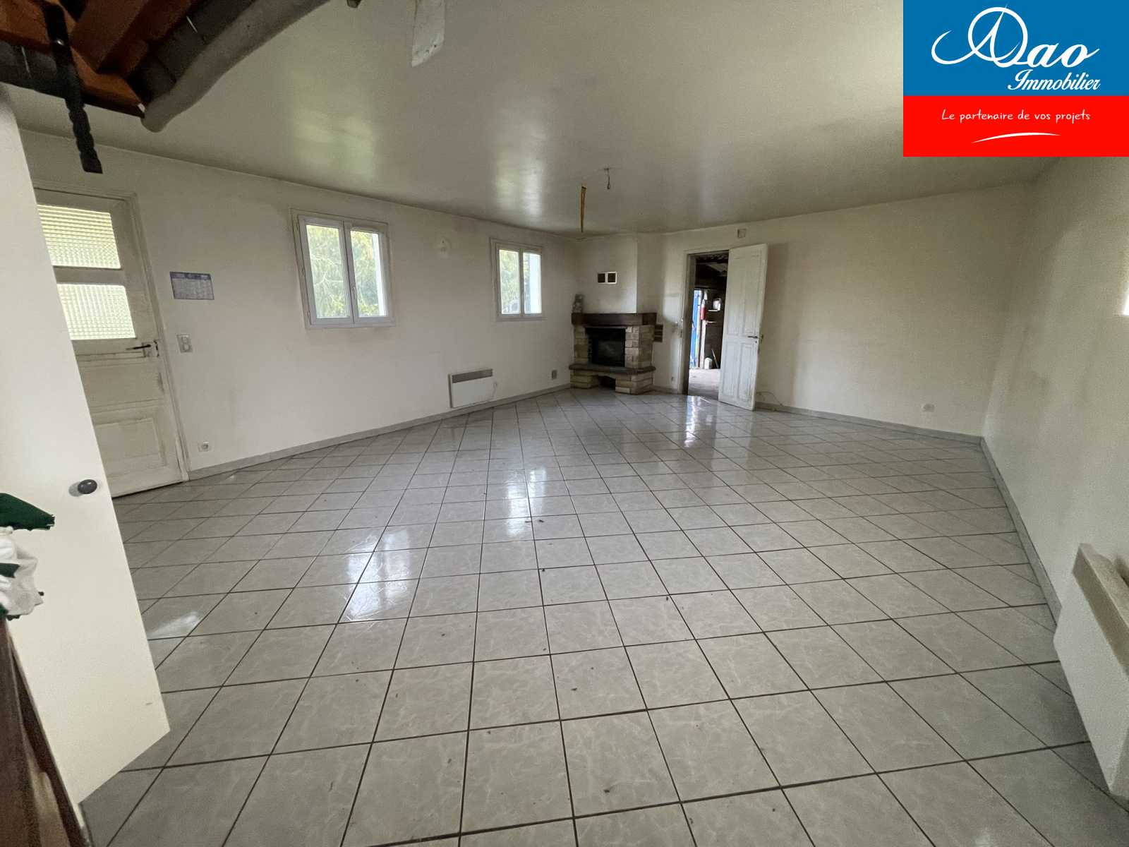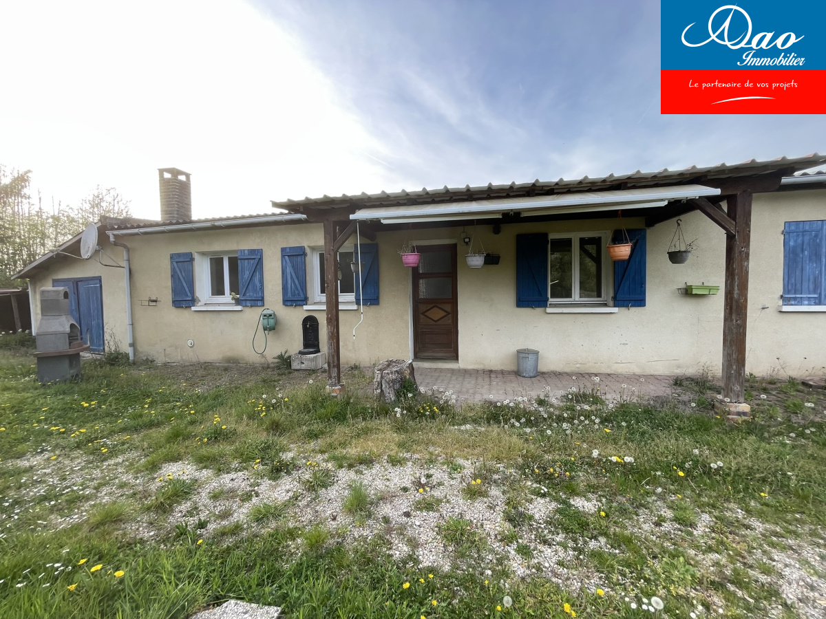 A vendre, 20 min de Troyes, secteur Estissac proche commerces, maison de 73m2 de plain pied à rénover ( toiture, isolation, électricité...) comprenant: grand salon séjour, cuisine, salle de douche, wc, deux chambres. Construction parpaing, toiture fibro. Chauggahe électrique+ cheminée insert. Une dépendance d'environ 200m2 en parpaing, toiture fibro. Terrain d'environ 5000m2. Raccordée au tout à l'égout. MANDAT:1450. Prix frais d'agence inclus charge acquéreur hors frais de notaire. Faire offre. Vendu par agence DAO Immobilier, 113 av Galliéni, 10300 Sainte Savine et Aix en Othe.