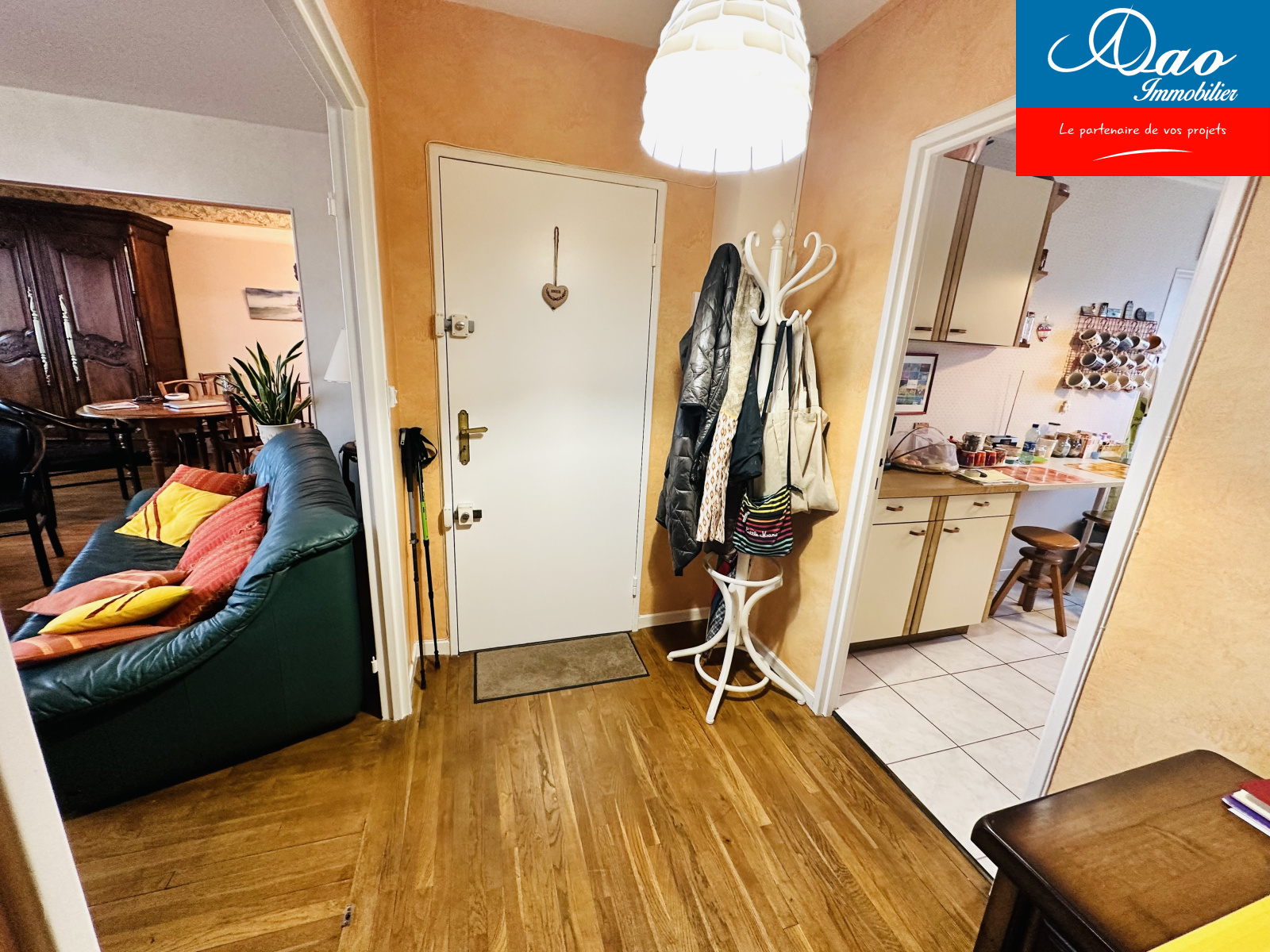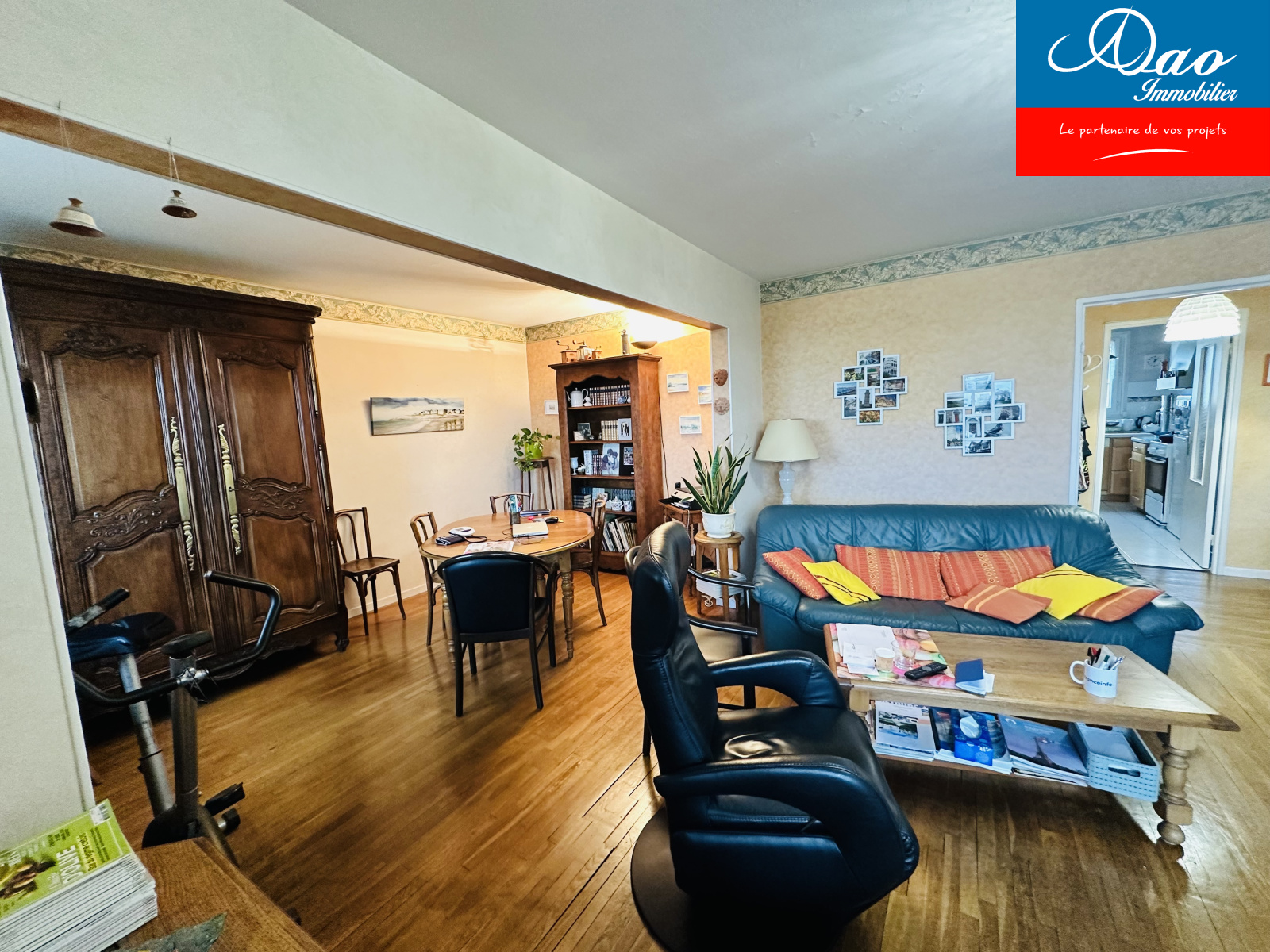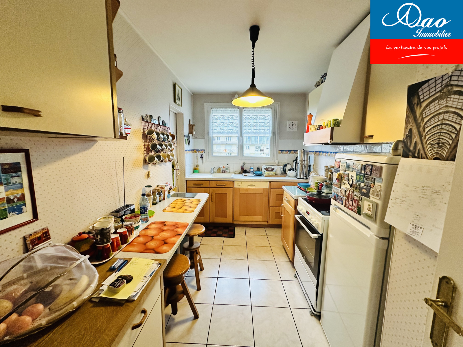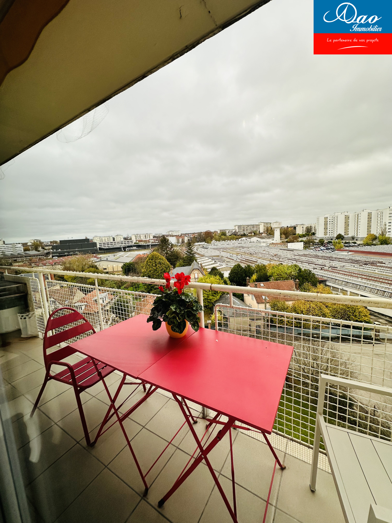 A vendre type 4 avec balcon et garage; appartement avec vue imprenable sur la ville de Troyes, situé au 7 ème étage avec ascenseur; ce type 4 est composé: hall d'entrée, salon séjour avec parquet chêne donnant sur un balcon exposition sud, cuisine aménagée équipée, cellier, 2 belles chambres, salle de douche, wc, cave. Double vitrage, volets élec, chauffage collectif gaz. Collectif de 342 lots, pas de procédure en cours, Charge ( eau chaude, froide, chauffage, entretien) 2460 e/an. Taxe foncière:1322 e/an. MANDAT 1283. Prix frais d'agence inclus charge acquéreur. Agence DAO Immobilier, 113 av Galliéni, 10300 Sainte Savine et Aix en Othe.